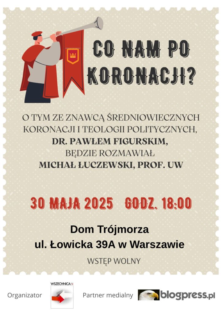 Co nam po koronacji? Dr Paweł Figurski i prof. Michał Łuczewski w Domu Trójmorza 30.05.2025 r. godz. 18:00. Zapraszamy!