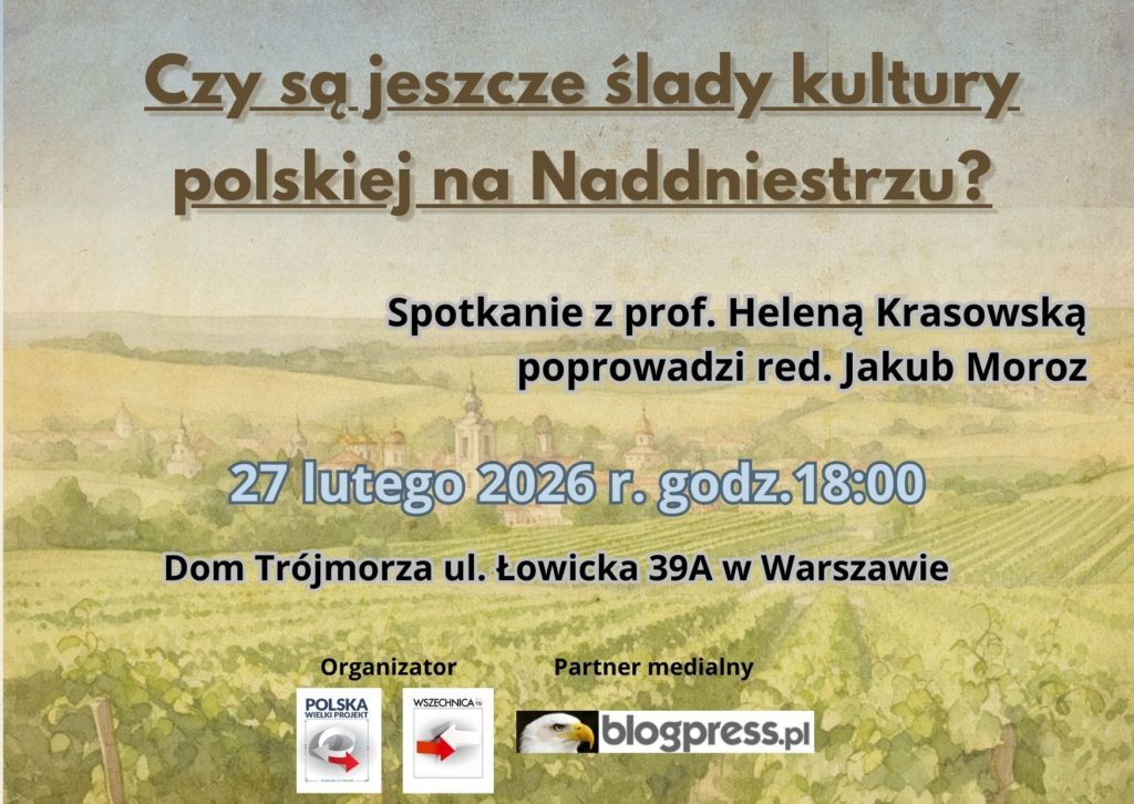 Czy są jeszcze ślady kultury polskiej na Naddniestrzu? Spotkanie z prof. Heleną Krasowską poprowadzi red. Jakub Moroz – 27 lutego 2026 r. o godz. 18:00.