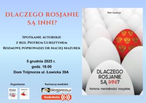 Dlaczego Rosjanie są inni? Red. Piotr Gursztyn, dr Maciej Mazurek – piątek 5.12.2025 r. godz. 18:00 Dom Trójmorza.