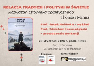 Relacja tradycji i polityki w świetle „Rozważań człowieka apolitycznego” Manna. Dom Trójmorza, piątek 23 stycznia 2026 r., godz. 18:00. Zapraszamy!